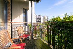The accommodation comprises entrance hall, open plan living room/dining room, kitchen, two bedrooms, master en-suite and a main bathroom. There is a private balcony/terrace off the living room and parking is included.